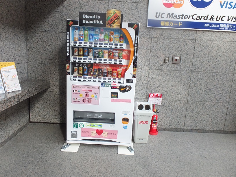 ↓当センターオリジナルデザイン寄付型自動販売機 第1号 福島銀行本店ロビー