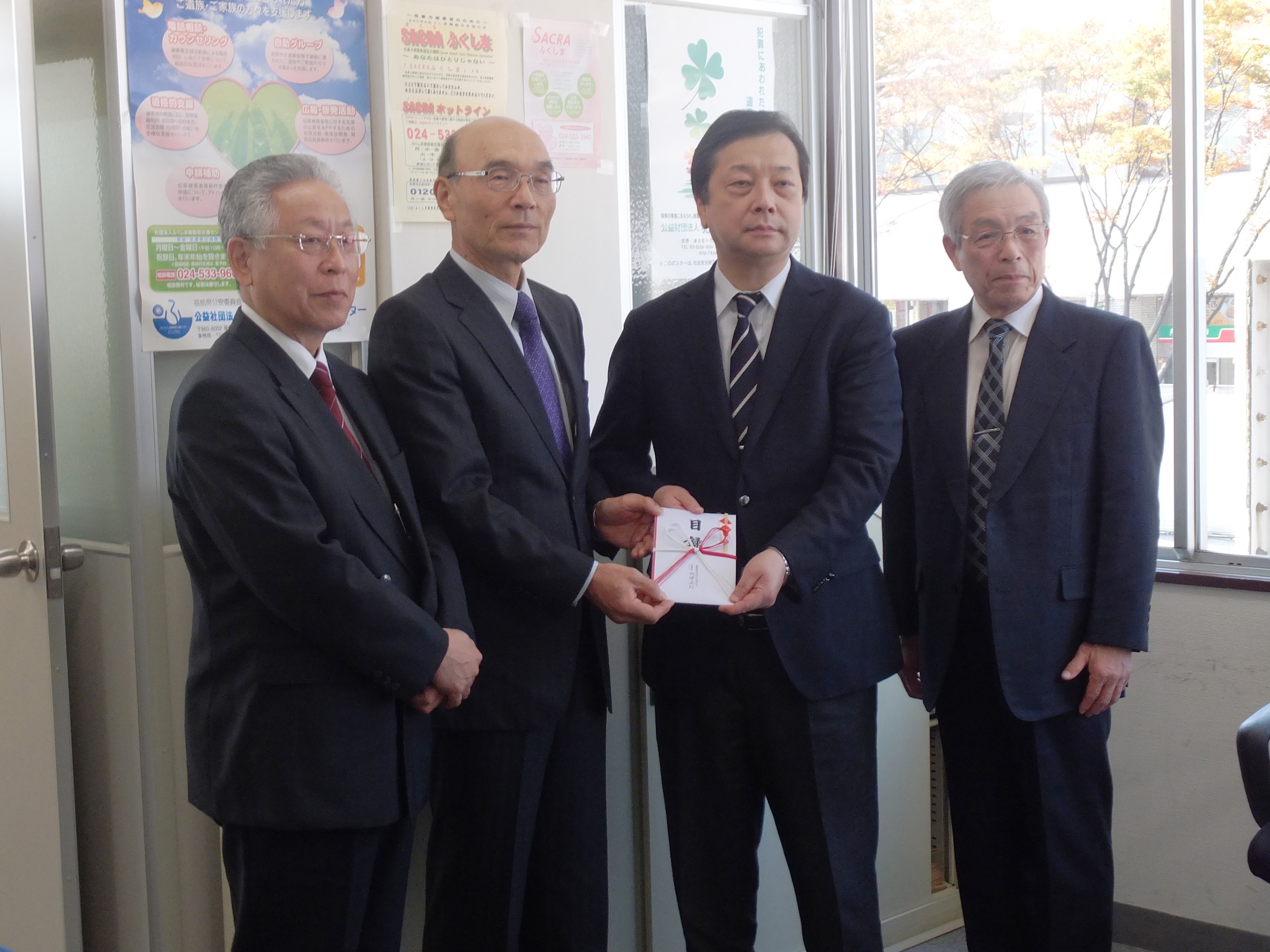 福島県民共済生活協同組合(理事長:穴澤正行氏、以下「県民共済」とします。)から寄付の申し出があり、11月5日(火)午前11時から、当センター事務室におきまして、贈呈式が執り行われました。
